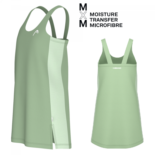 - По мере того, как интенсивность на корте возрастает, женское платье SPIRIT поможет вам оставаться свежими и чувствовать себя комфортно, позволяя вам сосредоточиться на игре. В то время как высокоэффективная технология Moisture Transfer Microfiber обеспечивает охлаждающий эффект и помогает ткани быстро высыхать, контрастные сетчатые вставки по бокам улучшают воздухопроницаемость. Свободно перемещайтесь по корту в свободном платье с двумя разрезами спереди, а также двухслойной верхней частью груди спереди и сзади. Брендинг HEAD и логотип в виде дуги добавляют премиальный спортивный вид платью.